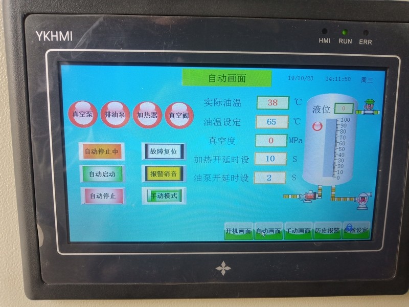 本機采用變頻器、液位變送器、溫度傳感儀、真空度傳感儀等一係列自動控製儀表采集設備運行的各種信息,交由中心處理器進行處理,自動控製整台設備的運行並監視設備的運行狀況。本機帶有各種保護裝置(過載保護、過壓保護、相序保護、異常運行停機保護),可確保設備安全運行。真空榴莲视频APP黄片適用於:透平油、液壓油、潤滑油、絕緣油、變壓器油、電容器油、壓縮機油